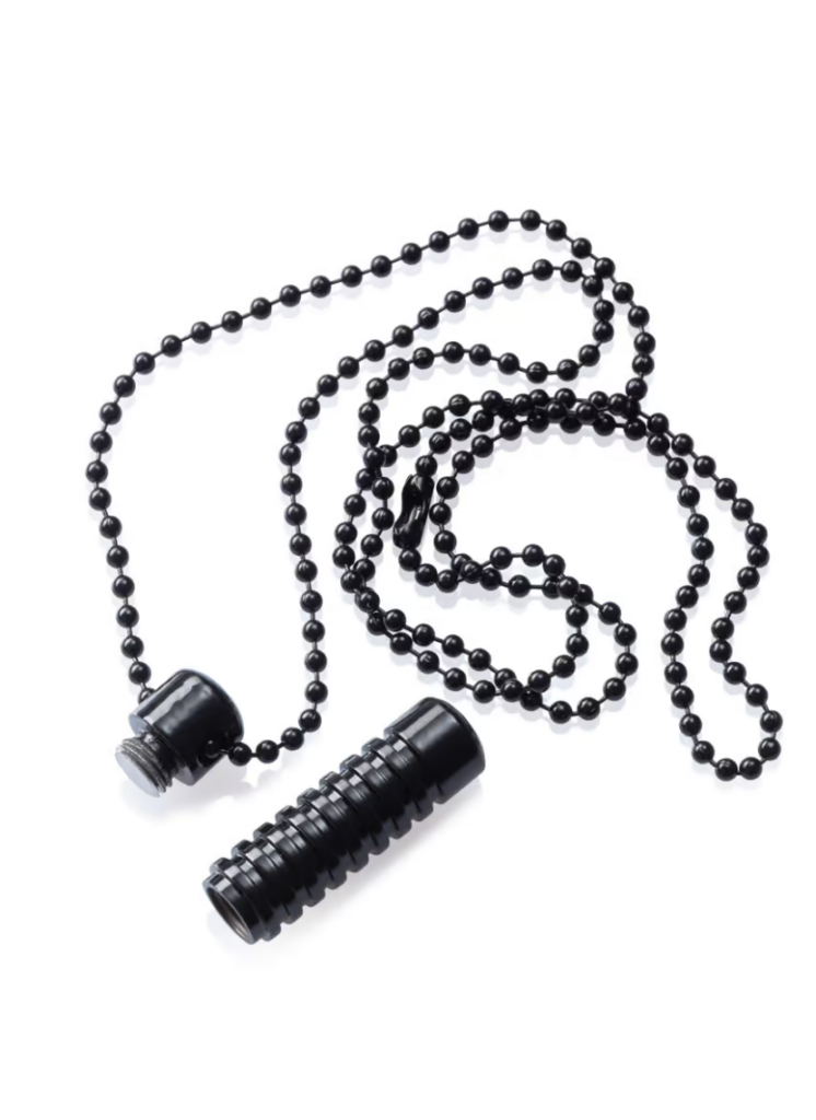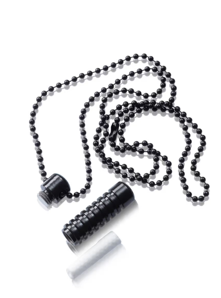This Poppers Inhaler is black and comes with a fine ball chain that is also black. You can wear this functional jewelry unobtrusively around your neck. To prepare, unscrew the inhaler and drip the popper onto a cotton stick, then screw the inhaler back on. So you carry your poppers always ready around your neck and can always unscrew the inhaler and pull it. Included is an inhaler with the black chain plus a cotton stick. You can also purchase additional Wattesticks from us.