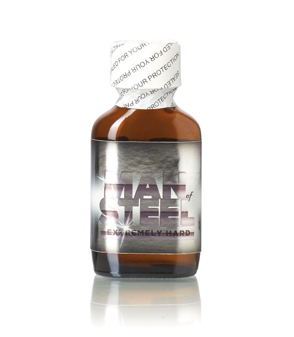 Man of Steel Extremely Hards Poppers 25ml est sur le marché depuis 2023 et contient du nitrite de pentyle de force 6. Man of Steel Poppers fait partie des poppers les plus puissants et convient pour des sessions particulièrement délirantes, par exemple pour l’utilisation de godemichés monstrueux ou pour des sessions de fist délirantes. Man of Steel Poppers est puissant et particulièrement durable. Teste les poppers Man of Steel et ajoute cette bouteille à ton panier dès aujourd’hui.