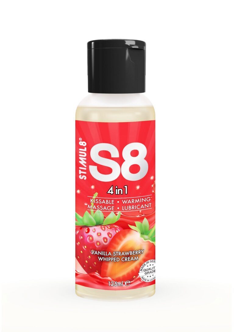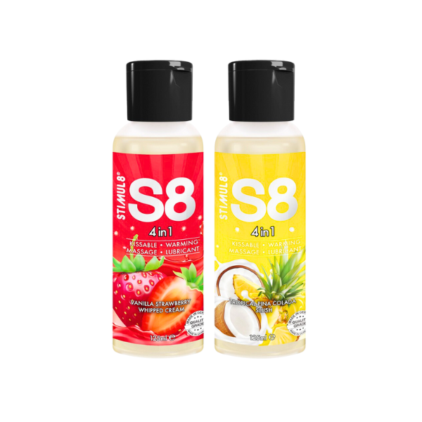 Le S8 4-in-1 Dessert Lube 125ml Fraise Ananas de S8 est le choix parfait pour des préliminaires sensuels et coquins. La formule de haute qualité est composée d’ingrédients respectueux du corps. Cela signifie qu’il est également embrassable et comestible ! Le gel lubrifiant S8 4-en-1 Dessert peut être apprécié de multiples façons : comme lubrifiant, huile de massage, délicieuse friandise ou huile chauffante. La formule a des propriétés chauffantes, ce qui signifie que lorsqu’elle est appliquée sur les zones érogènes, elle vous réchauffe doucement avec une excitation brûlante ! Amusez-vous bien !