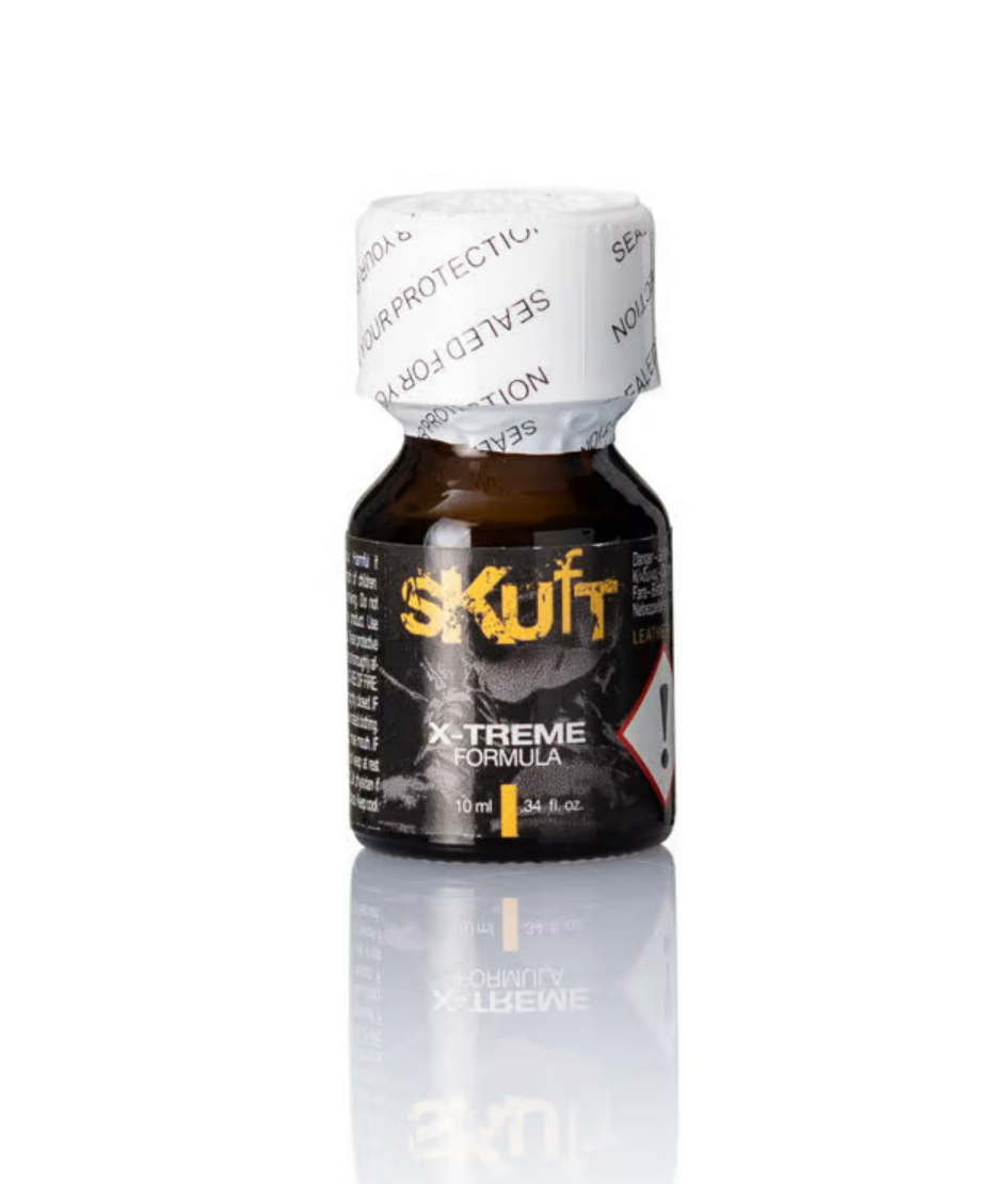 Le SKUfT Poppers 10ml est basé sur le pentylnitrite original. Ce poppers est un must-have pour tous les vauriens, les durs à cuire et les méchants ou ceux qui aimeraient le devenir. Même si tu aimes les bottes de springers et les bottes militaires, cette X-TREME Formula te conviendra parfaitement.