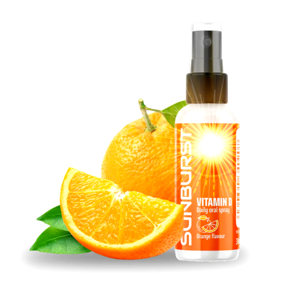 Mit unserem Sunburst Vitamin D Spray erhältst Du täglich die empfohlene Dosis Vitamin D auf einfache und leckere Art und Weise. Einfach einen Sprühstoss in deinem Mund sprühen und schon hast Du Deinen Bedarf an diesem wichtigen Vitamin gedeckt – und das mit leckerem Orangen-Geschmack! Eine Flasche enthält 30ml und reicht Dir somit für einen Monat aus. Sunburst Vitamin D Spray ist die perfekte Ergänzung für Deine tägliche Routine.