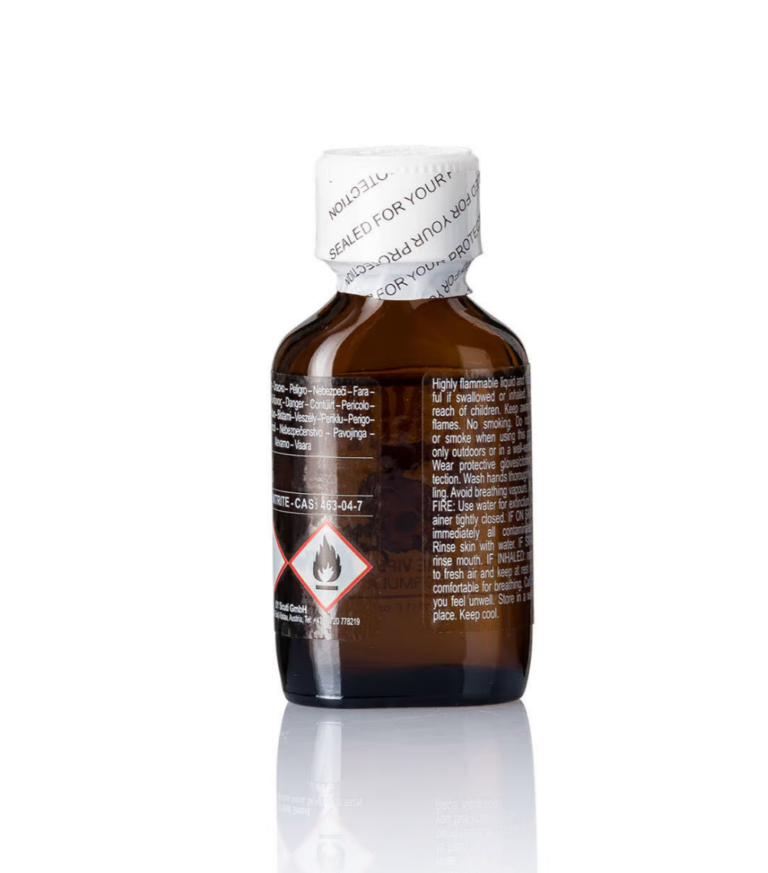 Ingrédient : nitrite de pentyle – vente à partir de 18 ans – non destiné à la consommation humaine
