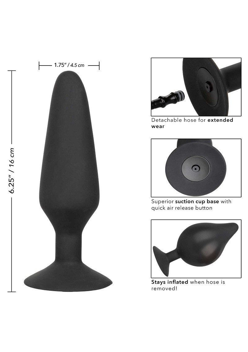 Die Pioniere männlicher Lust haben es erneut geschafft mit dem COLT XXXL Pumper Plug with Detachable Hose. Diese einzigartige Sonde bietet übergroße Freude mit einem aufblasbaren Körper, einem leicht zu drückenden Ball und bleibt sogar aufgeblasen, wenn der Schlauch abgenommen ist! Um Ihre Ekstase aufzublasen, befestigen Sie einfach den Schlauch und pumpen Sie den leicht zu drückenden Ball. Sobald Sie die gewünschte Größe erreicht haben, behält die Sonde ihre Größe bei, auch wenn der Schlauch entfernt ist, und die schnelle Luftauslösetaste ermöglicht sanftes Entlüften und Entfernen. Um die aufregende Welt des analen Vergnügens in vollen Zügen zu genießen, ist diese pralle Sonde gleichmäßig aufgeblasen, um mannsgroße Stimulation zu liefern. Die biegsame Silikonsonde hat die perfekte Menge an Flexibilität, um sich natürlich mit Ihrem Körper zu biegen und zu bewegen. Die leistungsstarke Saugnapfbasis eignet sich perfekt für kreatives Vergnügen, die Sonde kann mit oder ohne Geschirr verwendet werden oder auf einer flachen Oberfläche montiert werden, um eine teuflisch gute Zeit zu haben. Die flexible Sonde, der Schlauch und der Ball bestehen aus nahtlosem Silikon mit ABS-Kunststoff-Auslassventilen. Vor dem Aufblasen hat der Silikonstopfen eine Gesamtgröße von 6,25” x 1,75” (13,25 cm x 3,75 cm).