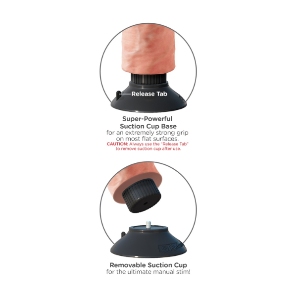 Realistischer 9 inch Penis-Vibrator mit schön geformten Hoden und abnehmbarem Saugfuss. Schon beim Anblick erkennt man das liebevolle und detailgetreue Handwerk, das diesen Vibrator kaum von einem echten Penis unterscheidbar macht. Im Inneren lässt dich ein leistungsstarker Vibrationsmotor seine Stärke lustvoll spüren. Durch ein inneres Gelenk kann der Dildo geknickt und in verschiedene Positionen gebogen werden, um eine noch angenehmere und bessere Anpassung an deine Körperkontur zu ermöglichen. Die unterschiedlichen Vibrationsstärken werden durch einen Drehschalter aktiviert und geregelt. Ein abnehmbarer Saugfuss ermöglicht ein bombenfestes Anbringen auf glatten Oberflächen und erlaubt einen handfreien Vibrationsspass. Die extrem saugstarke Basis wird durch ein Schraubgewinde mit dem Vibrator verbunden und dient auch als Halterung bei der Verwendung mit Strap-Ons. Der King Cock Vibrator ist aus superrealistischem, phthalate- und latex-freien, körperfreundlichem PVC hergestellt. Zu 100% wasserdicht und mit wasserbasierenden Gleitgelen verwendbar. Der leistungsstarke Motor wird mit 3 x AAA Batterien betrieben.